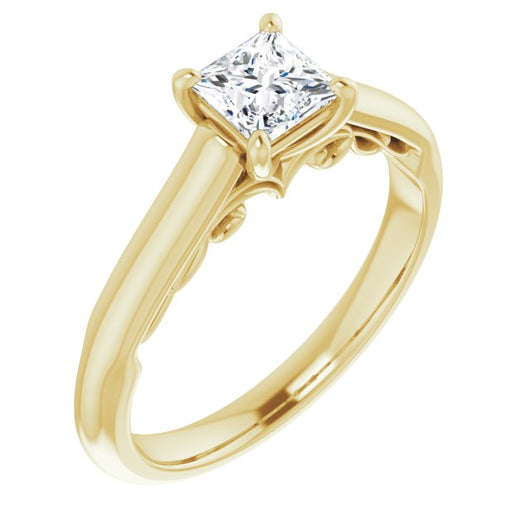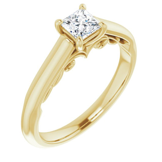 10K Yellow Gold Customizable Princess/Square Cut Cathedral Solitaire with Two-Tone Option Decorative Trellis 'Down Under'