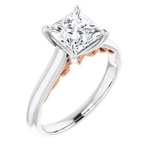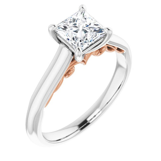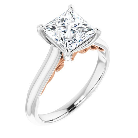 14K Rose & White Gold Customizable Princess/Square Cut Cathedral Solitaire with Two-Tone Option Decorative Trellis 'Down Under'
