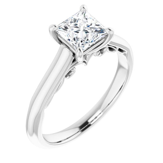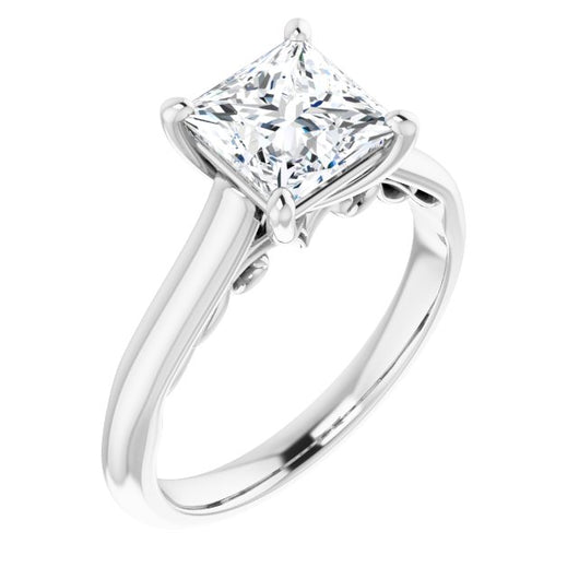 10K White Gold Customizable Princess/Square Cut Cathedral Solitaire with Two-Tone Option Decorative Trellis 'Down Under'