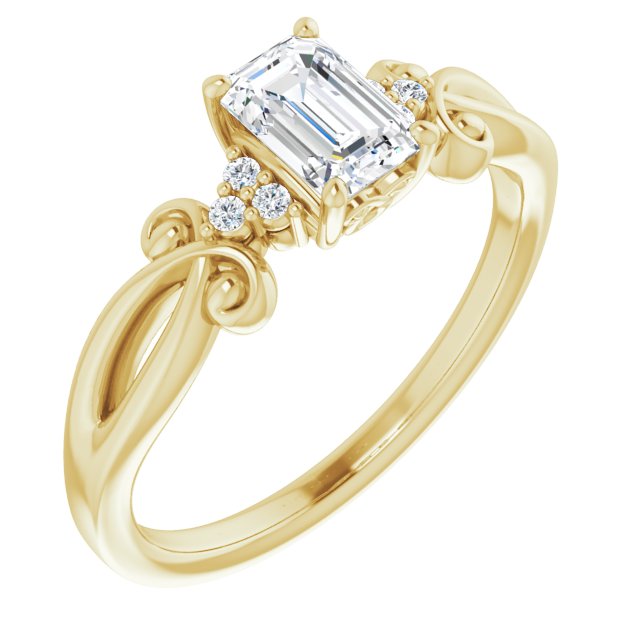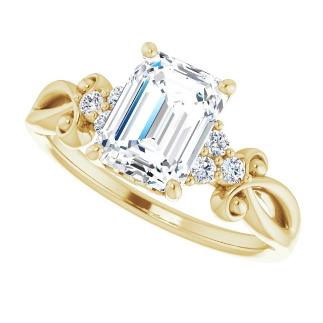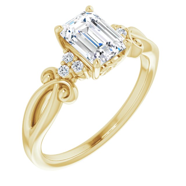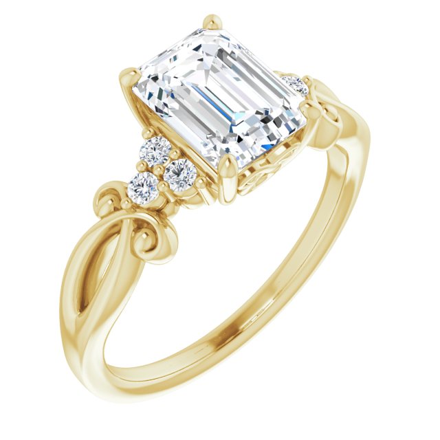 10K Yellow Gold Customizable 7-stone Emerald/Radiant Cut Design with Tri-Cluster Accents and Teardrop Fleur-de-lis Motif