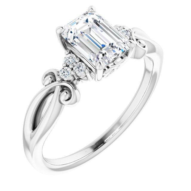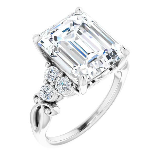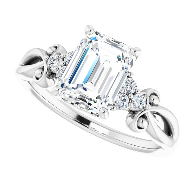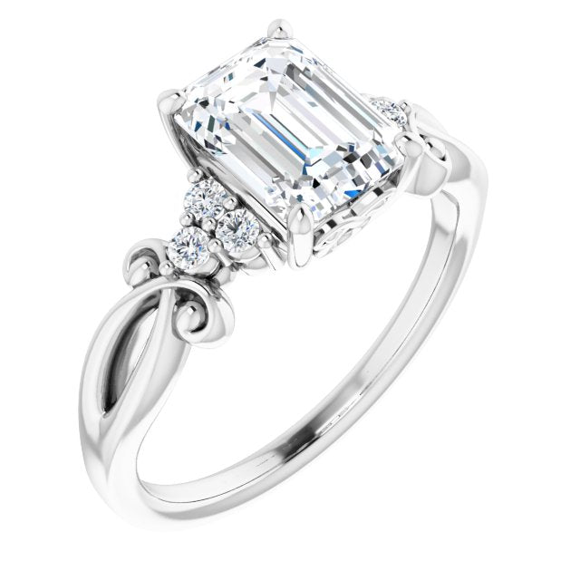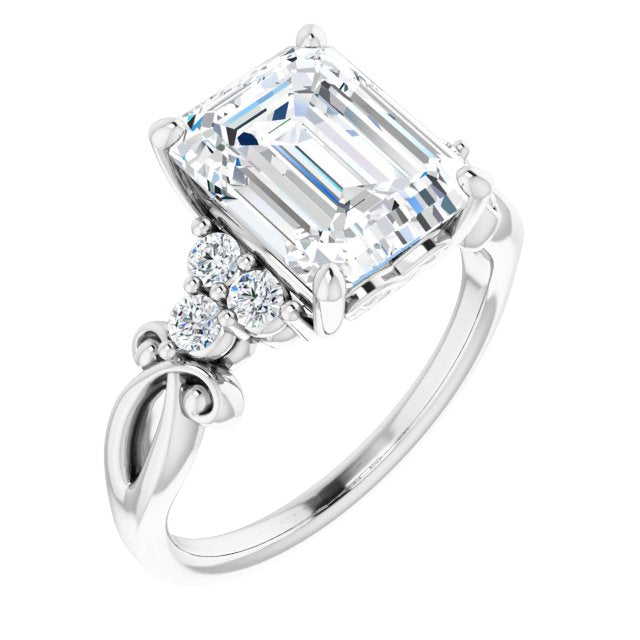 10K White Gold Customizable 7-stone Emerald/Radiant Cut Design with Tri-Cluster Accents and Teardrop Fleur-de-lis Motif