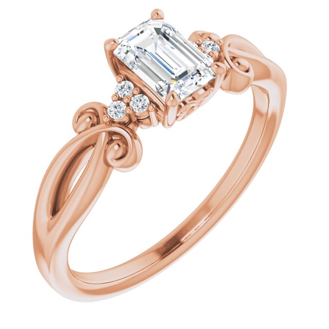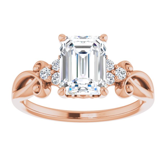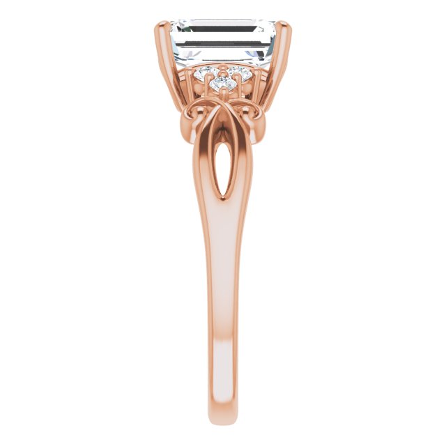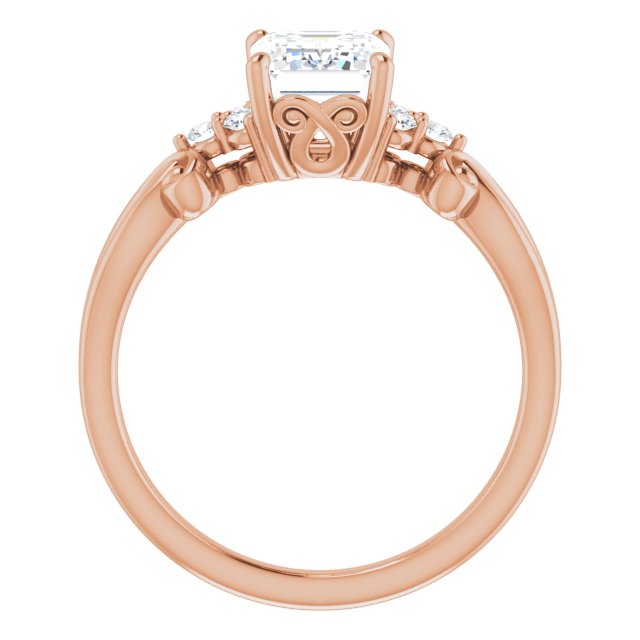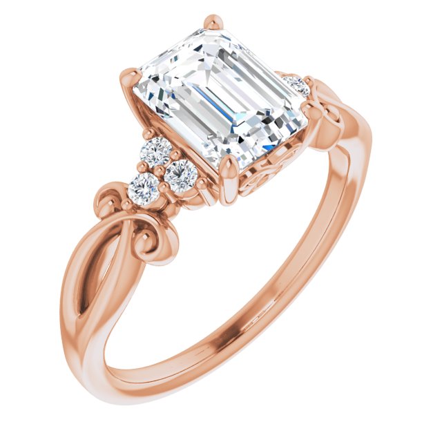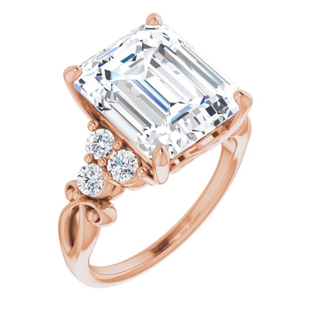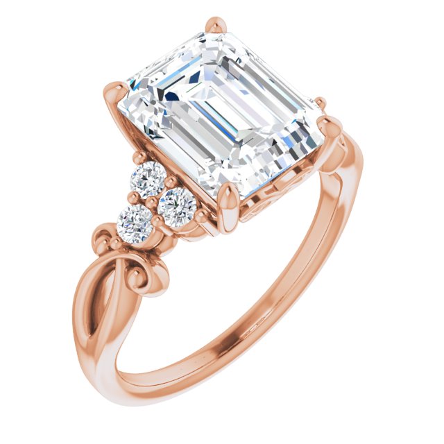10K Rose Gold Customizable 7-stone Emerald/Radiant Cut Design with Tri-Cluster Accents and Teardrop Fleur-de-lis Motif