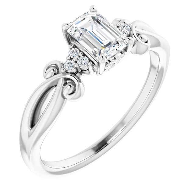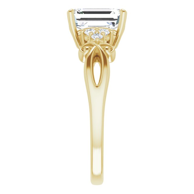 Center Stone Shape: Radiant Cut (as pictured with Emerald Cut). See this customizable ring set with other available center stone shapes here: customize setting.