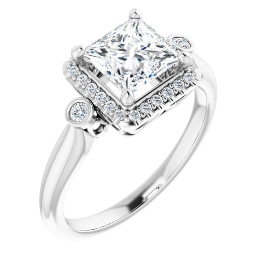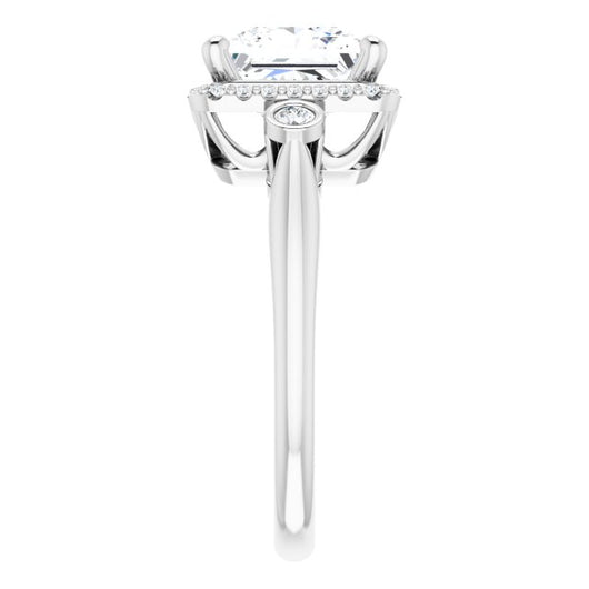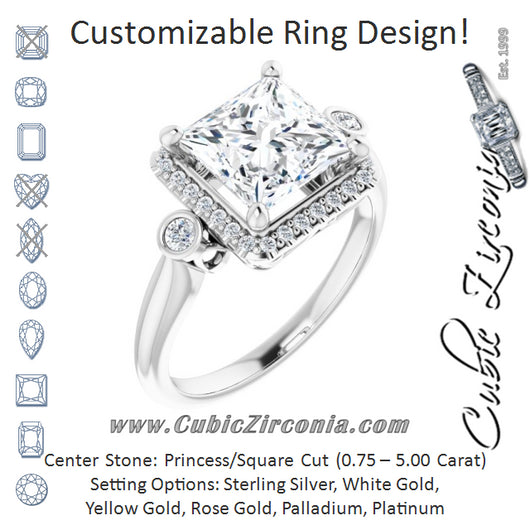 Center Stone Shape: Princess/Square Cut (as pictured). See this customizable ring set with other available center stone shapes here: customize setting.