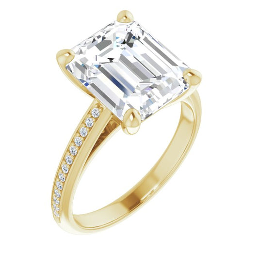 10K Yellow Gold Customizable Cathedral-set Emerald/Radiant Cut Style with Shared Prong Band