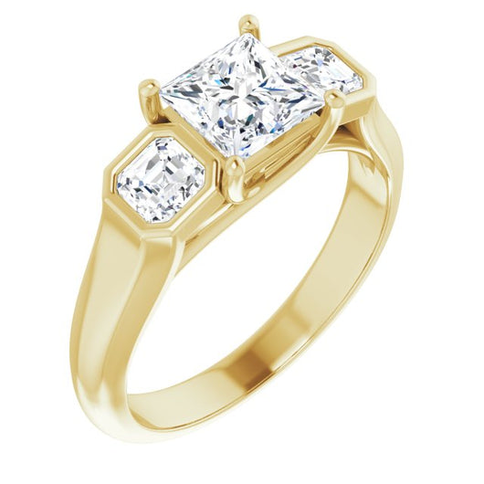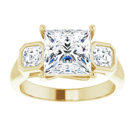 10K Yellow Gold Customizable 3-stone Cathedral Princess/Square Cut Design with Twin Asscher Cut Side Stones