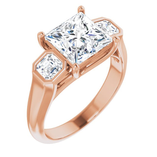 10K Rose Gold Customizable 3-stone Cathedral Princess/Square Cut Design with Twin Asscher Cut Side Stones