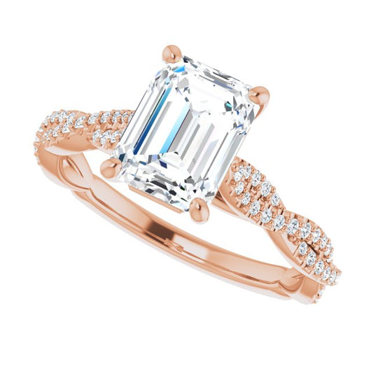 Center Stone Shape: Radiant Cut (as pictured with Emerald Cut). See this customizable ring set with other available center stone shapes here: customize setting.