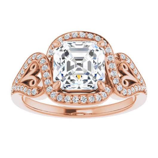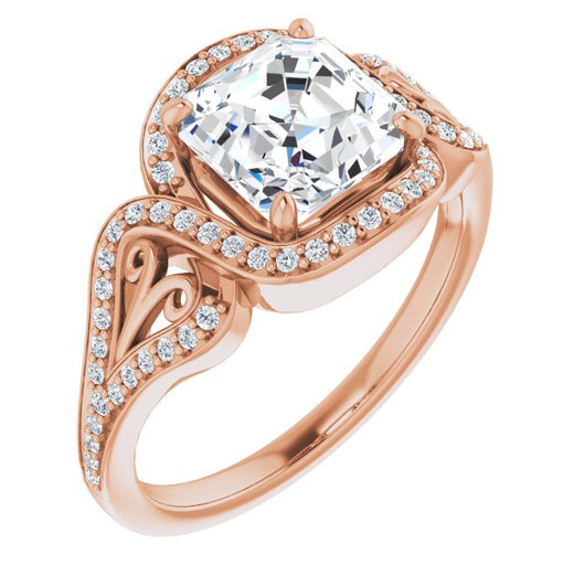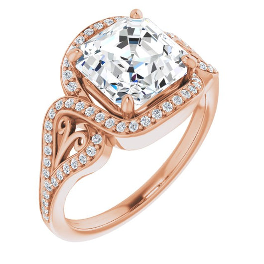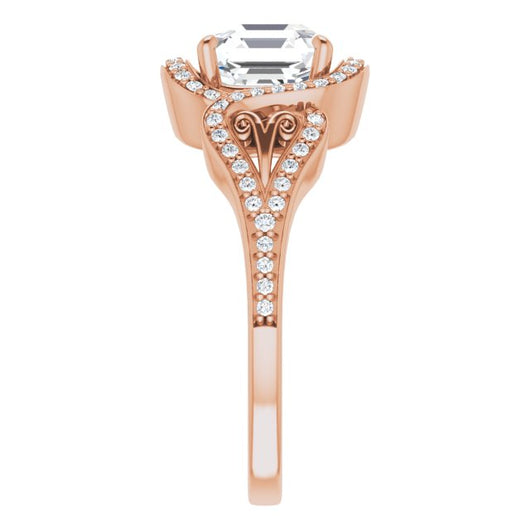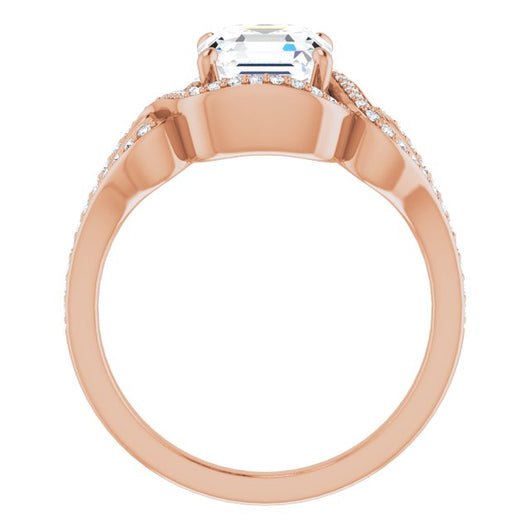 10K Rose Gold Customizable Asscher Cut Design with Bypass Halo and Split-Shared Prong Band