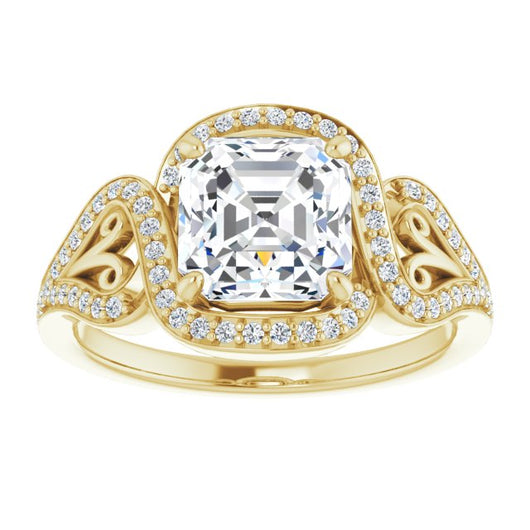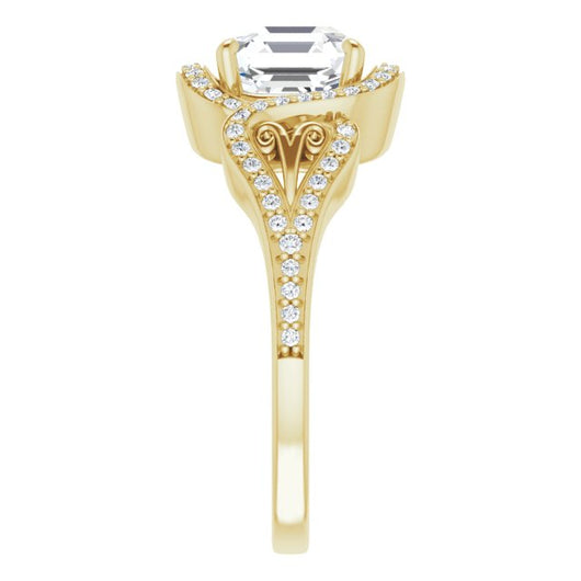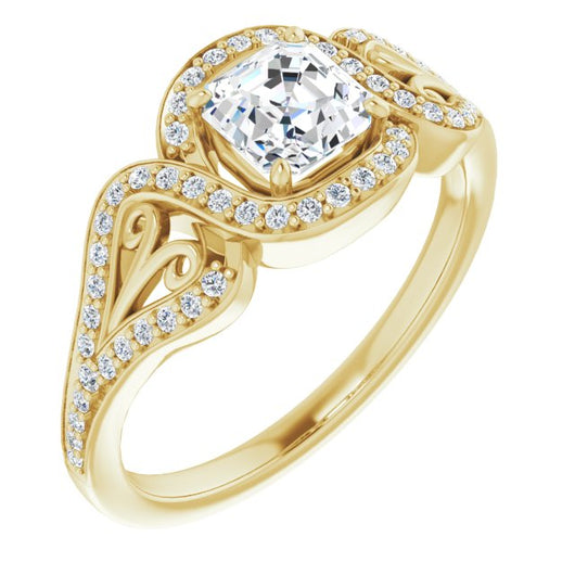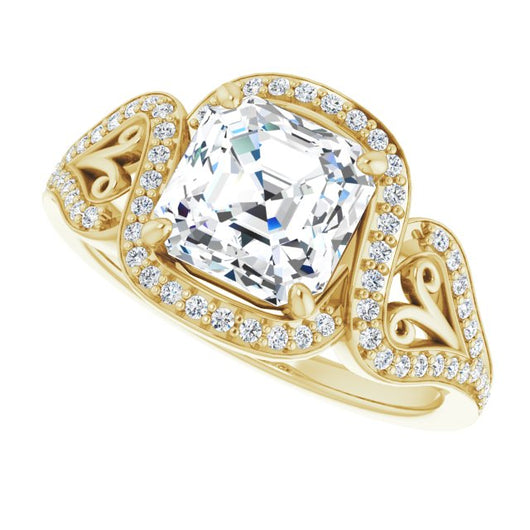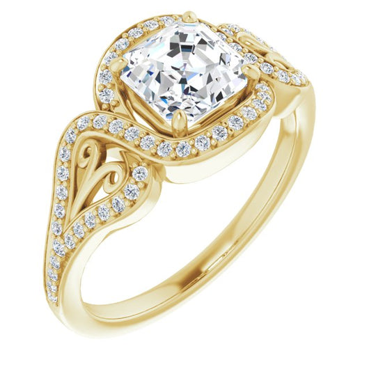 10K Yellow Gold Customizable Asscher Cut Design with Bypass Halo and Split-Shared Prong Band