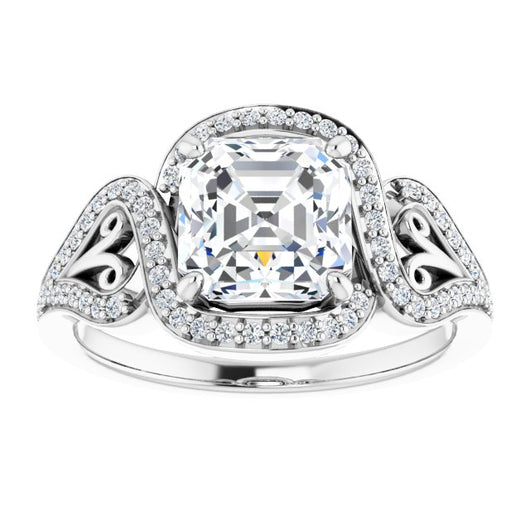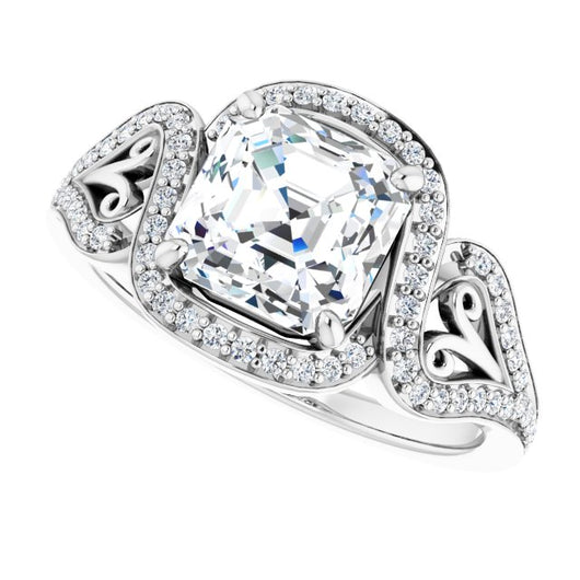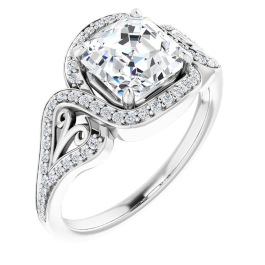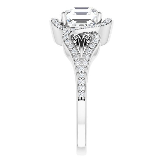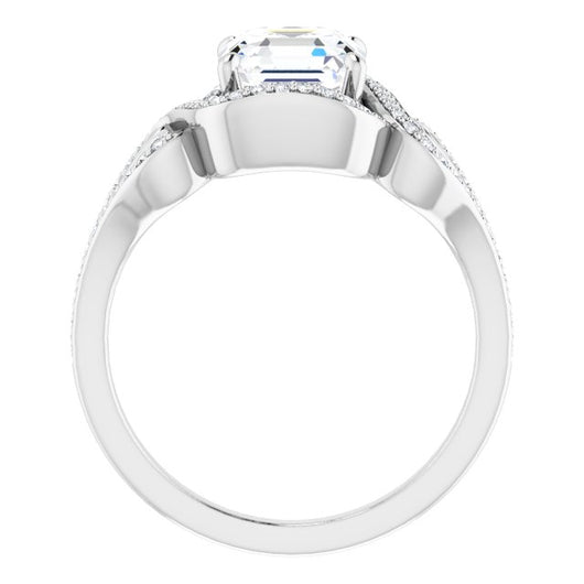 10K White Gold Customizable Asscher Cut Design with Bypass Halo and Split-Shared Prong Band