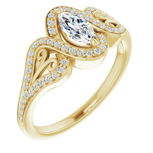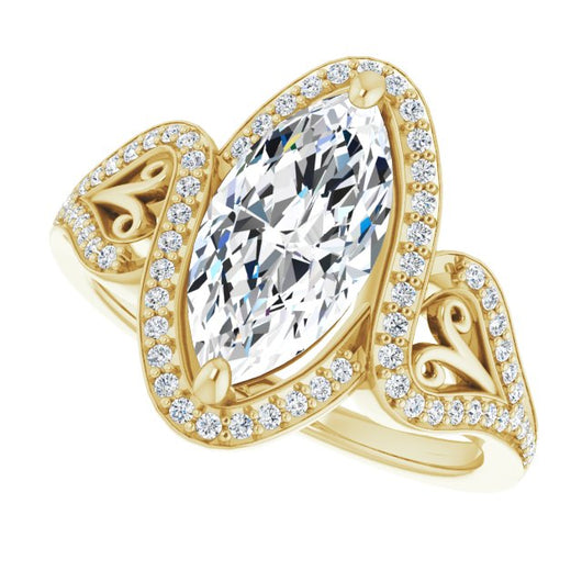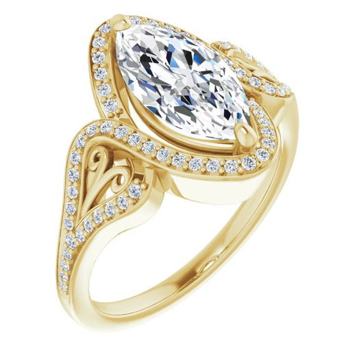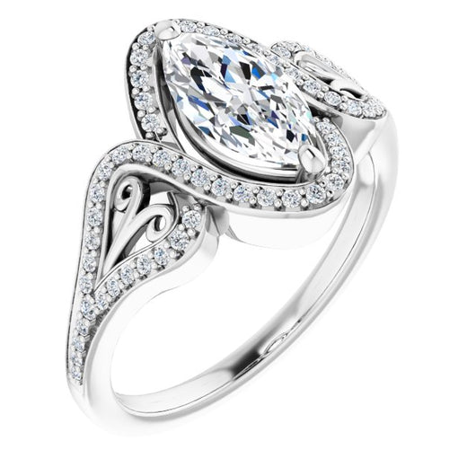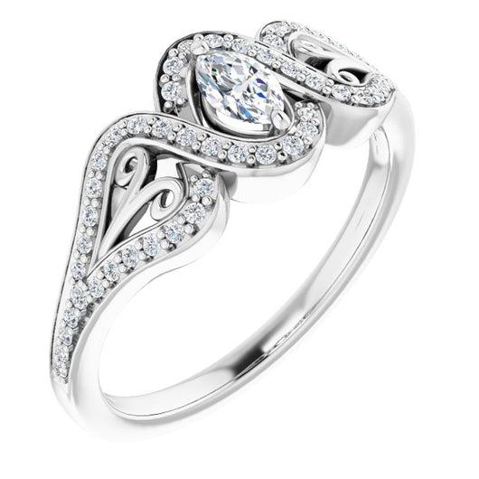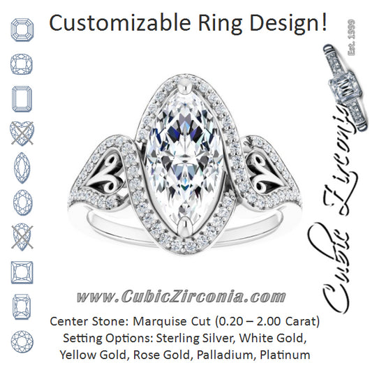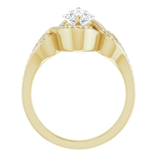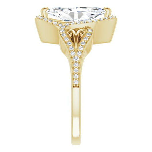 Center Stone Shape: Marquise Cut (as pictured). See this customizable ring set with other available center stone shapes here: customize setting.