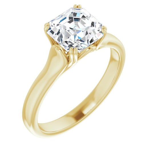 10K Yellow Gold Customizable Asscher Cut Solitaire with Under-trellis Design