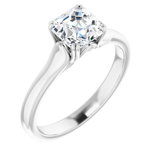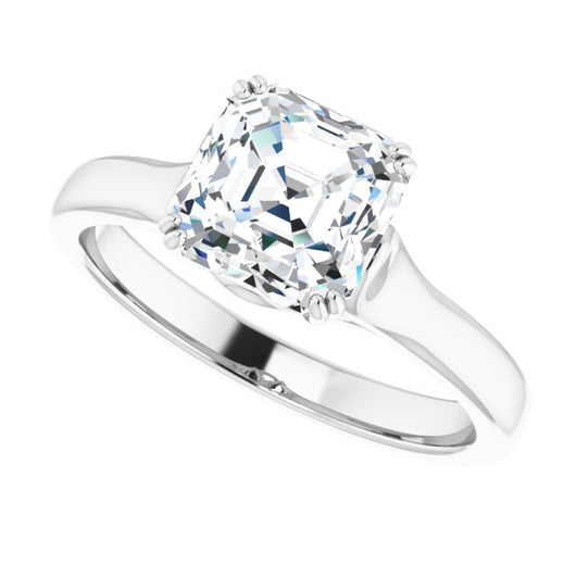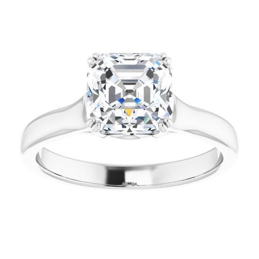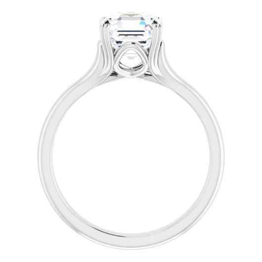 10K White Gold Customizable Asscher Cut Solitaire with Under-trellis Design