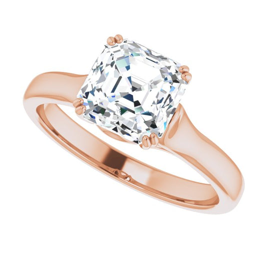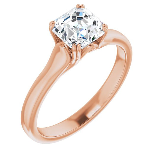 10K Rose Gold Customizable Asscher Cut Solitaire with Under-trellis Design