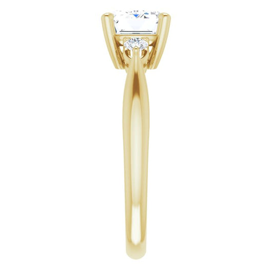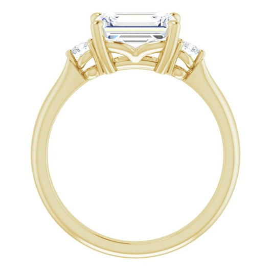 10K Yellow Gold Customizable 3-stone Emerald/Radiant Cut Design with Twin Petite Round Accents