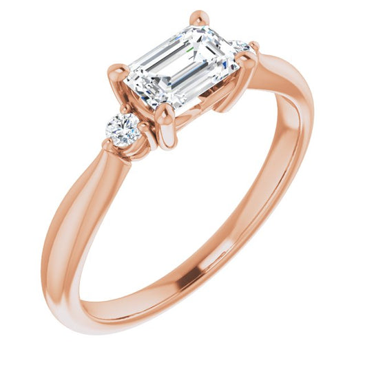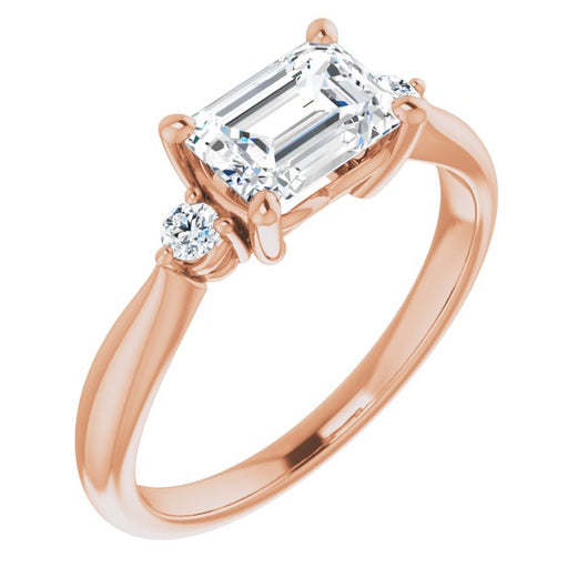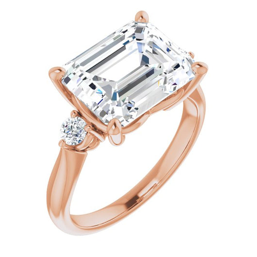 10K Rose Gold Customizable 3-stone Emerald/Radiant Cut Design with Twin Petite Round Accents