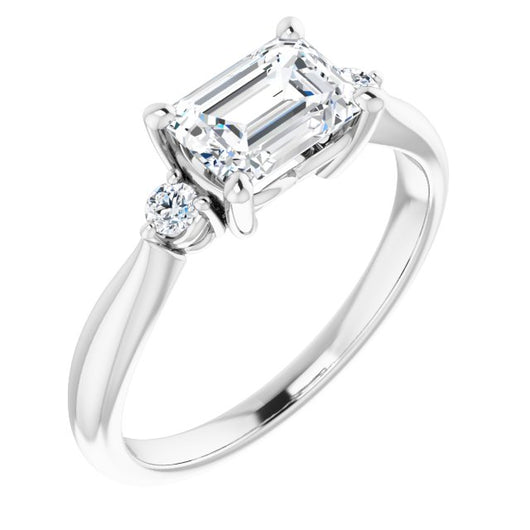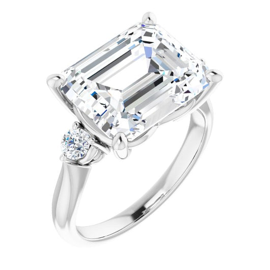 10K White Gold Customizable 3-stone Emerald/Radiant Cut Design with Twin Petite Round Accents