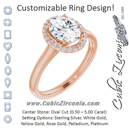 Cubic Zirconia Engagement Ring- The Amber (Customizable Halo-Styled Cathedral Oval Cut Design)