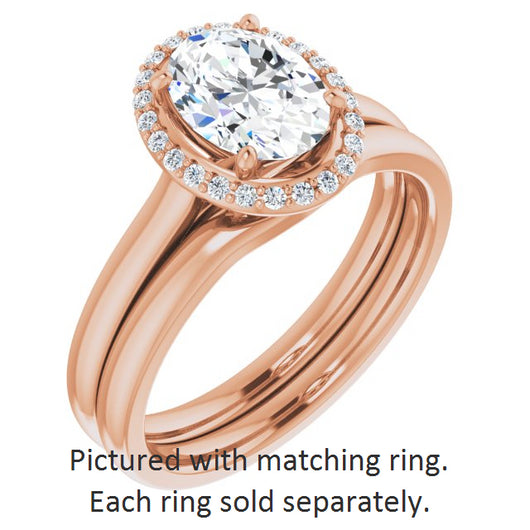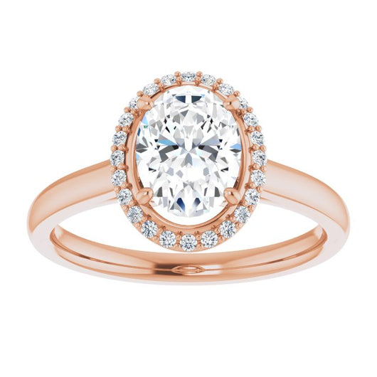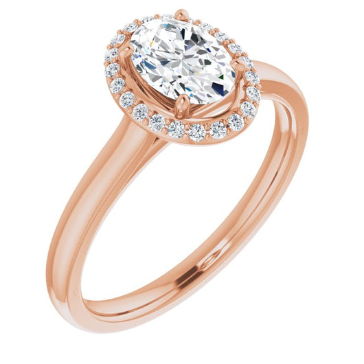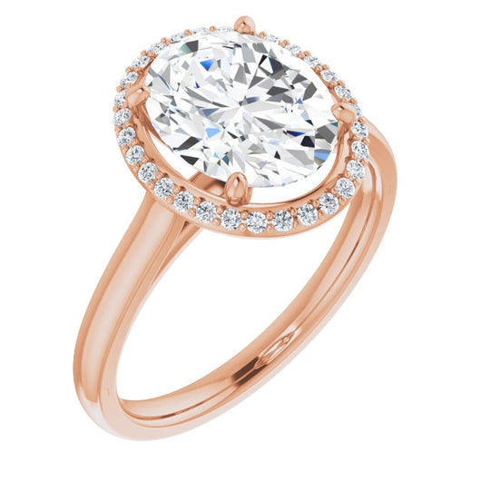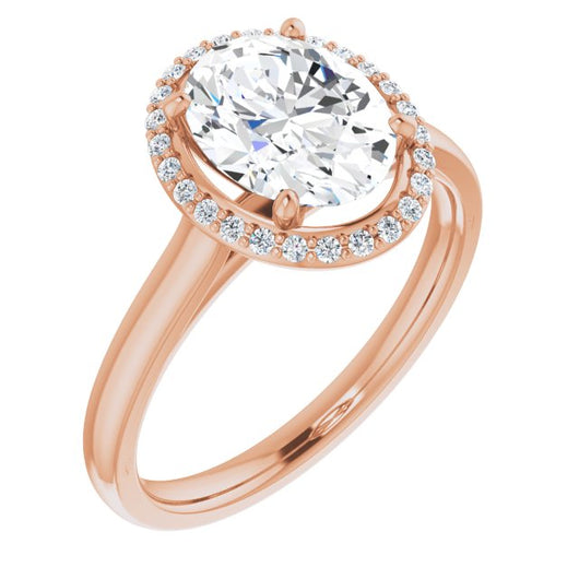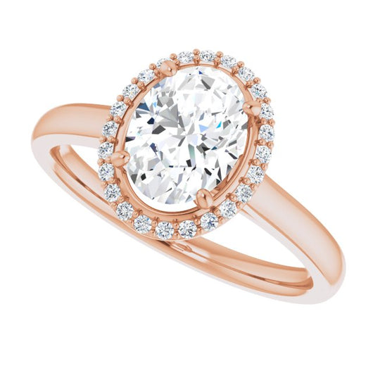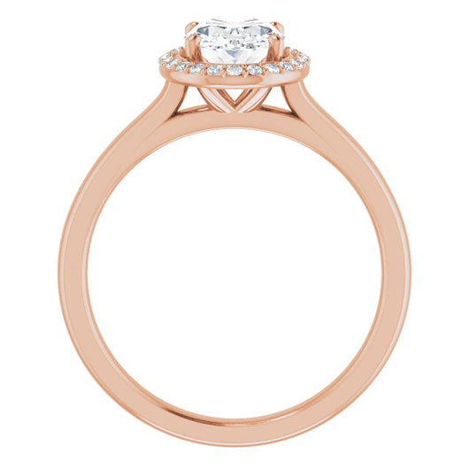 10K Rose Gold Customizable Halo-Styled Cathedral Oval Cut Design