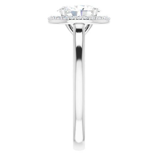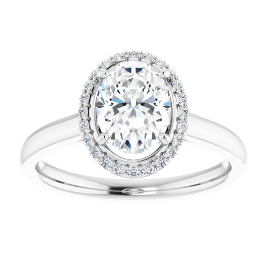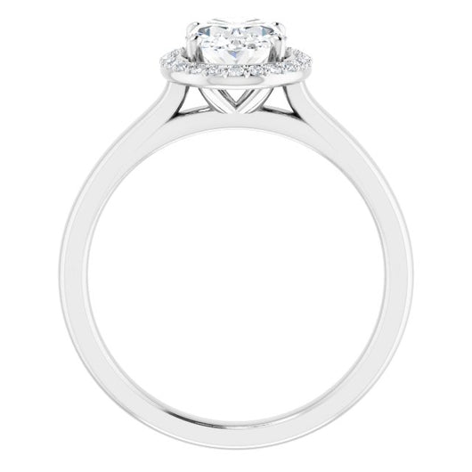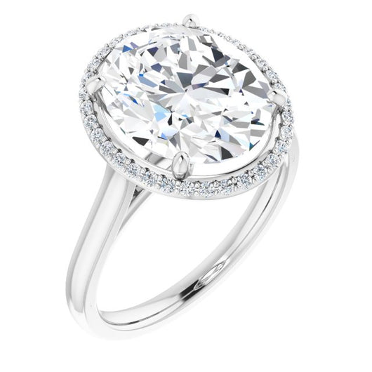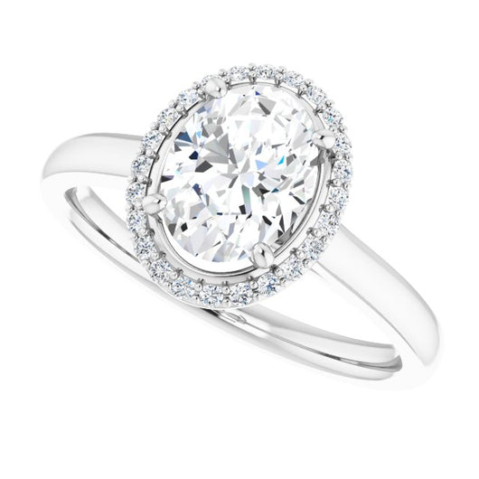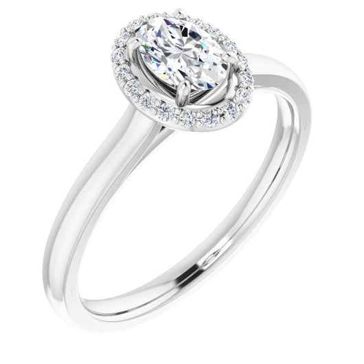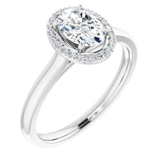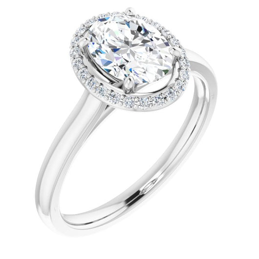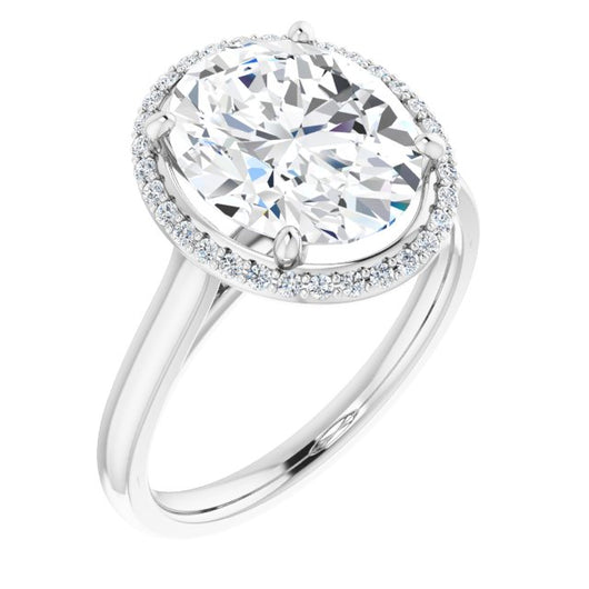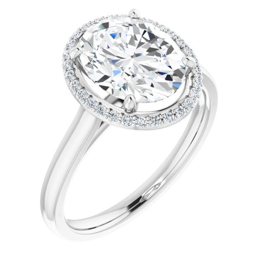 10K White Gold Customizable Halo-Styled Cathedral Oval Cut Design