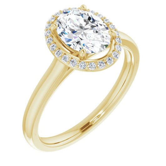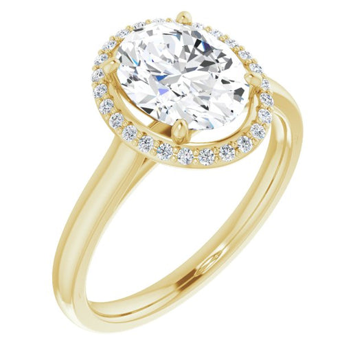 10K Yellow Gold Customizable Halo-Styled Cathedral Oval Cut Design