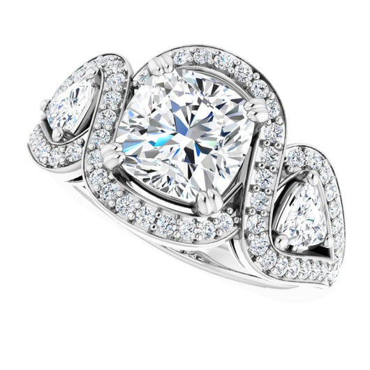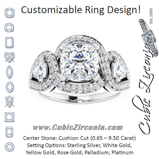 Cubic Zirconia Engagement Ring- The Ana Miranda (Customizable Cushion Cut Center with Twin Trillion Accents, Twisting Shared Prong Split Band, and Halo)