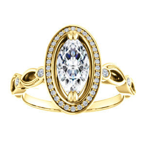 Center Stone Shape: Marquise Cut (as pictured). See this customizable ring set with other available center stone shapes here: customize setting.