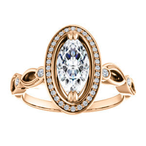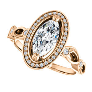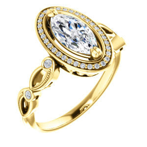 Cubic Zirconia Engagement Ring- The Angela (Customizable Whimsical Sculpture Halo-Style with Marquise Center)