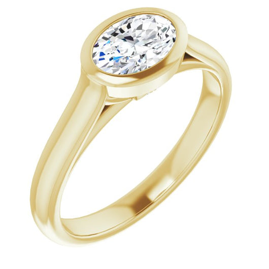 10K Yellow Gold Customizable Cathedral-Bezel Oval Cut 7-stone "Semi-Solitaire" Design