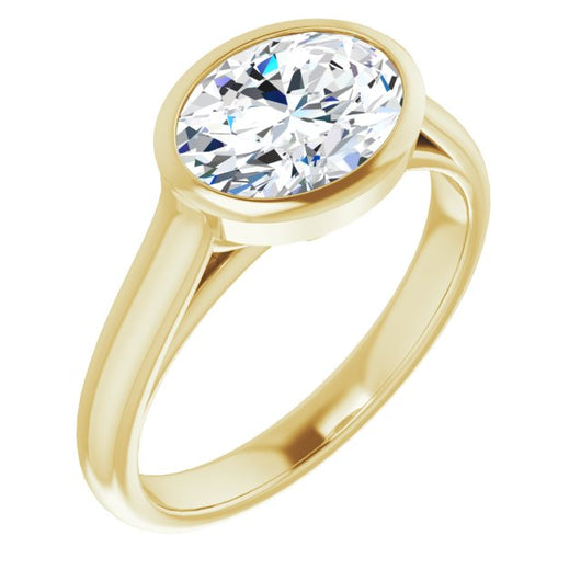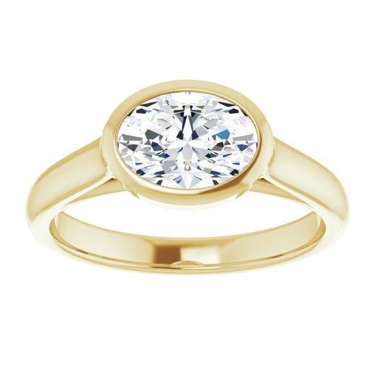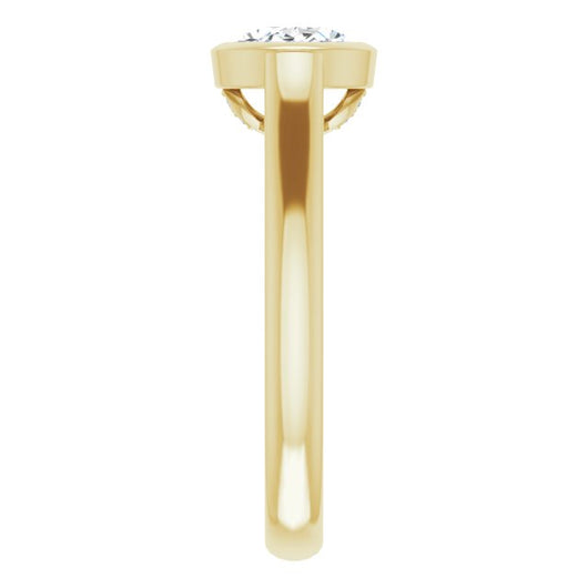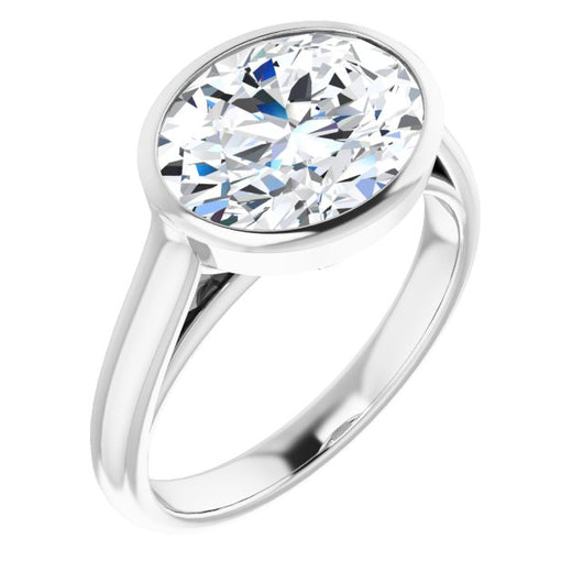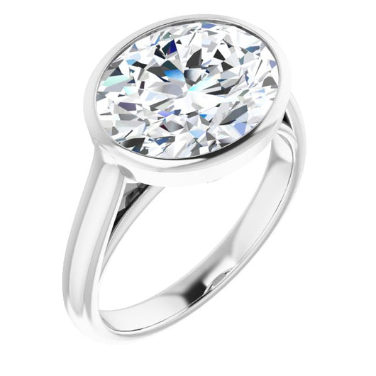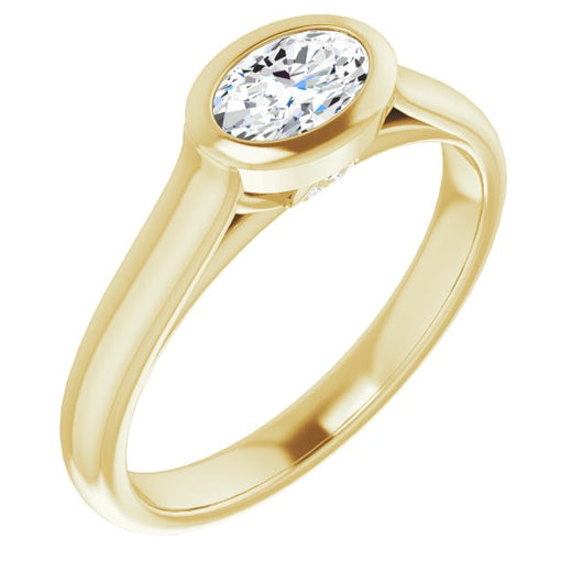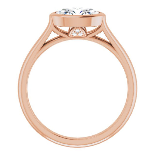 Oops! The lawyers are insistent that we weren't supposed to say that. Back to your original programming! The truth is that when it comes to the science of what's attractive, mystery never goes out of style. The art of subtly concealing just fires the imagination, trumping what's too blatantly revealing. That's why we're pleased to produce this product of our jewelry design team's imagination. The Ann Michelle is a bezel-set Oval Cut design with a triple (3) cluster of round-cut accent stones right beneath the center stone setting. You can see these accent stones best from the side view, below the raised cathedral setting holding your center stone sized in your choice of 0.50 to 5.00 carats. The Ann Michelle is available in all 12 precious metal types we most frequently manufacture; shop our smart menu to customize this ring to her/your heart's content.
