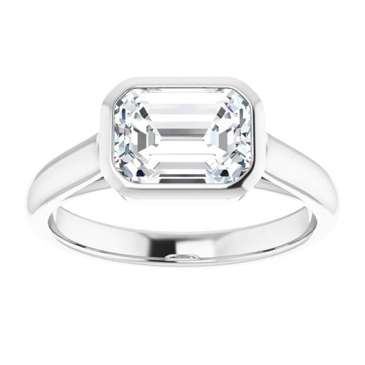 Center Stone Shape: Radiant Cut (as pictured with Emerald Cut). See this customizable ring set with other available center stone shapes here: customize setting.
