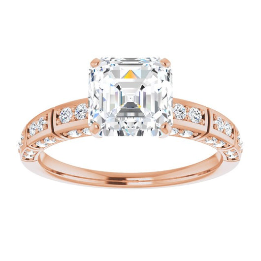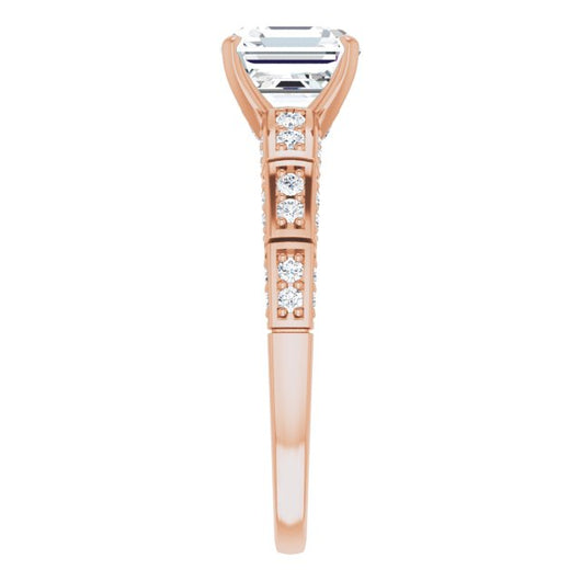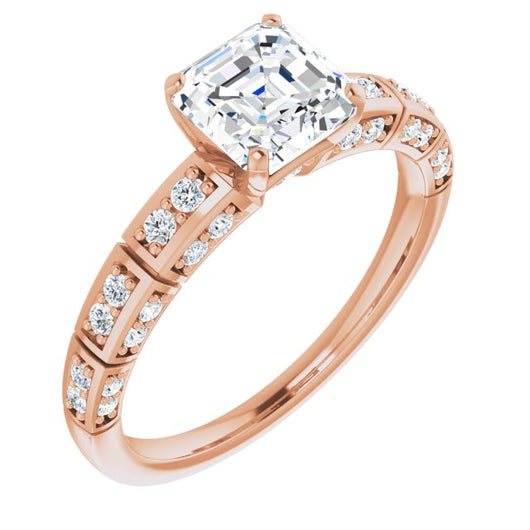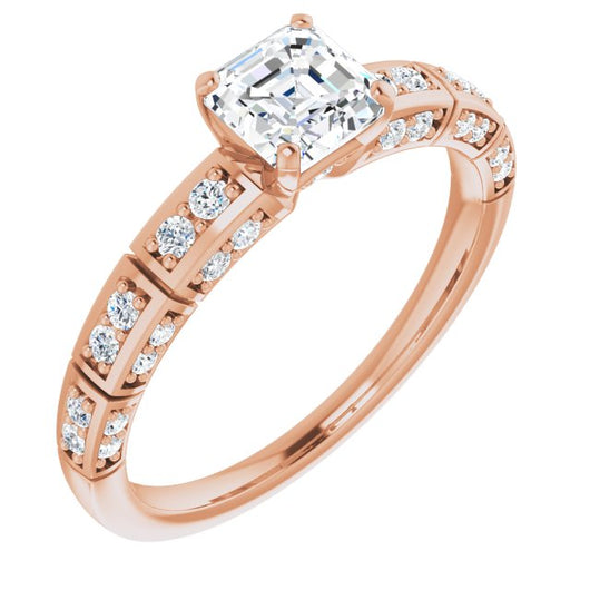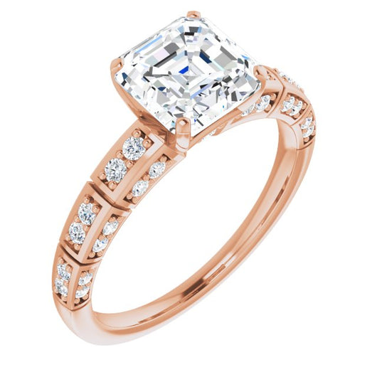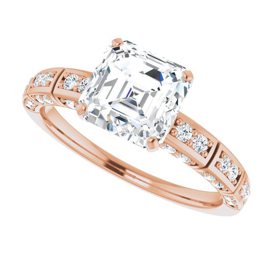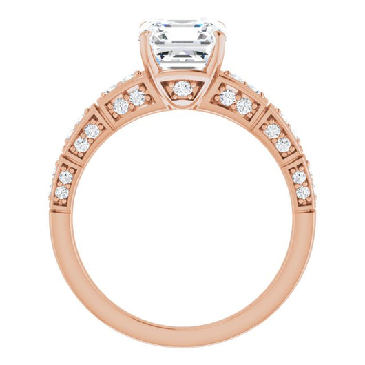 10K Rose Gold Customizable Asscher Cut Style with Three-sided, Segmented Shared Prong Band