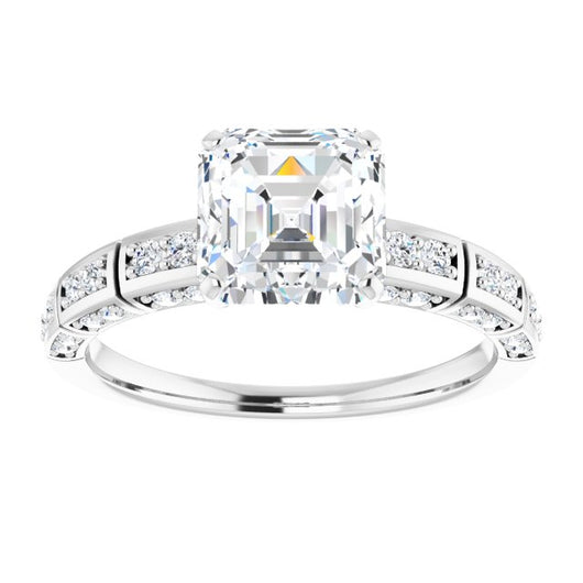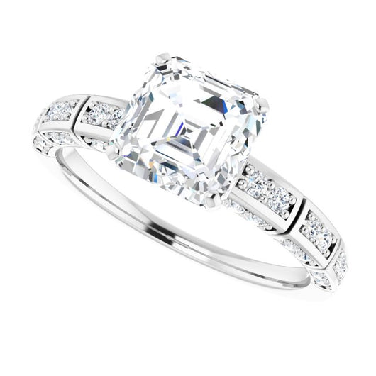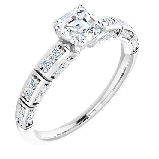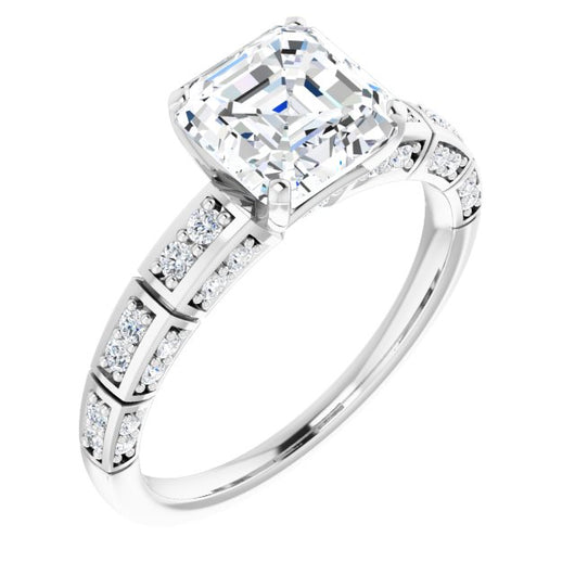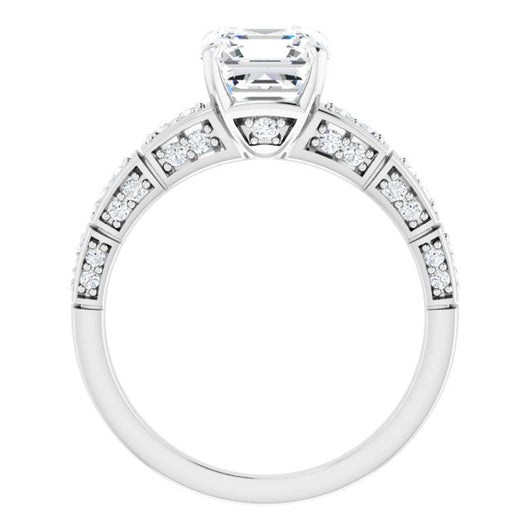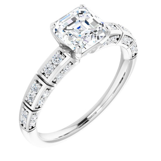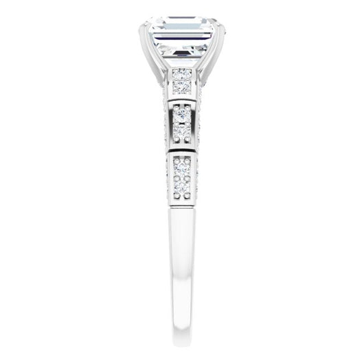 10K White Gold Customizable Asscher Cut Style with Three-sided, Segmented Shared Prong Band