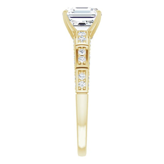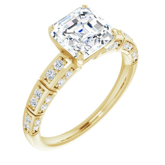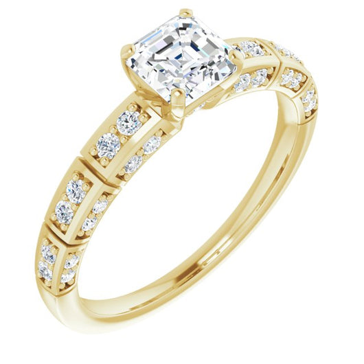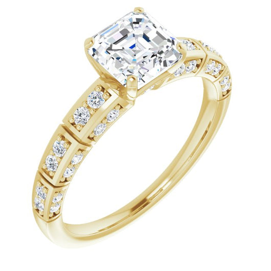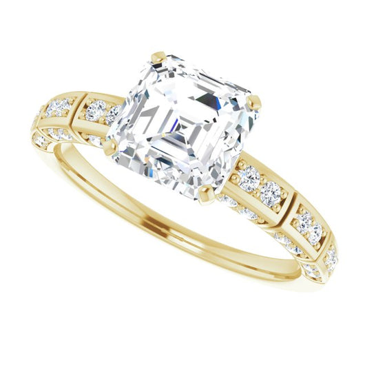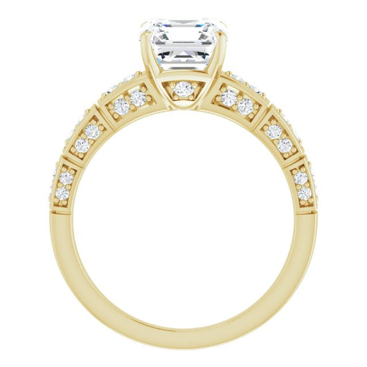 14K Yellow Gold Customizable Asscher Cut Style with Three-sided, Segmented Shared Prong Band