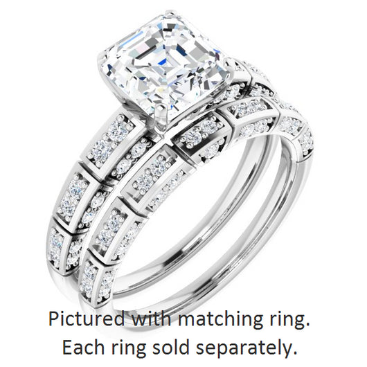 Center Stone Shape: Asscher Cut (as pictured). See this customizable ring set with other available center stone shapes here: customize setting.