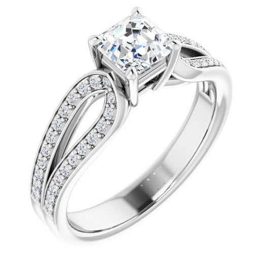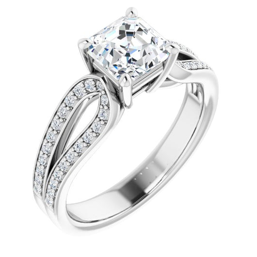 10K White Gold Customizable Asscher Cut Design featuring Shared Prong Split-band