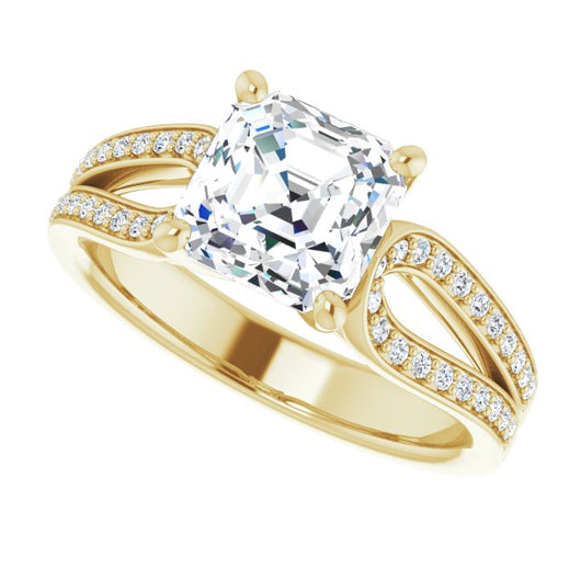 10K Yellow Gold Customizable Asscher Cut Design featuring Shared Prong Split-band