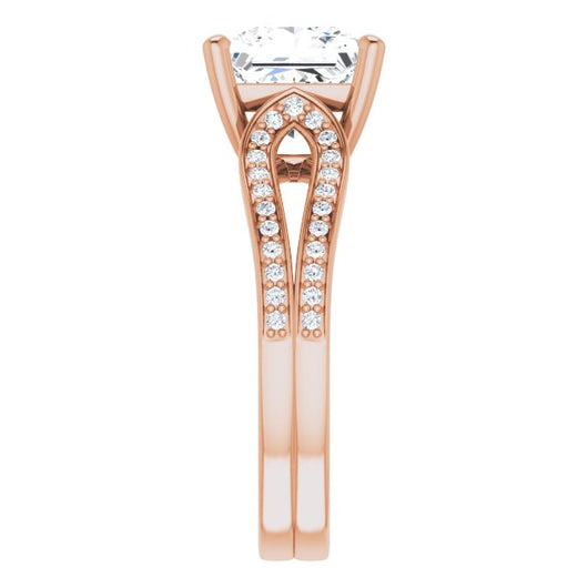 10K Rose Gold Customizable Princess/Square Cut Design featuring Shared Prong Split-band