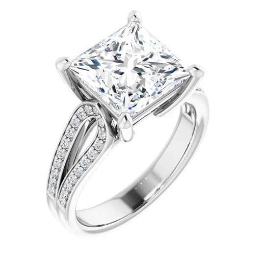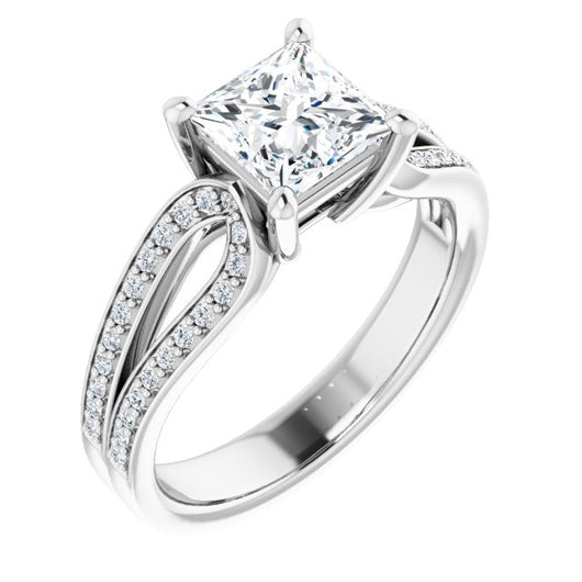 10K White Gold Customizable Princess/Square Cut Design featuring Shared Prong Split-band