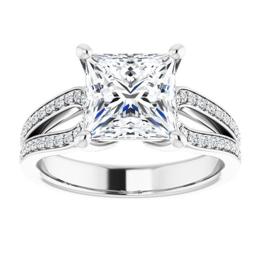 Cubic Zirconia Engagement Ring- The Annemarie (Customizable Princess/Square Cut Design featuring Shared Prong Split-band)