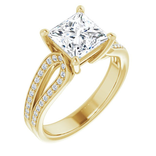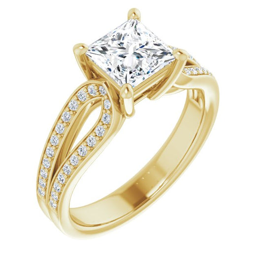10K Yellow Gold Customizable Princess/Square Cut Design featuring Shared Prong Split-band