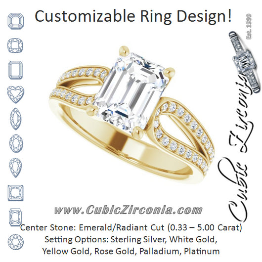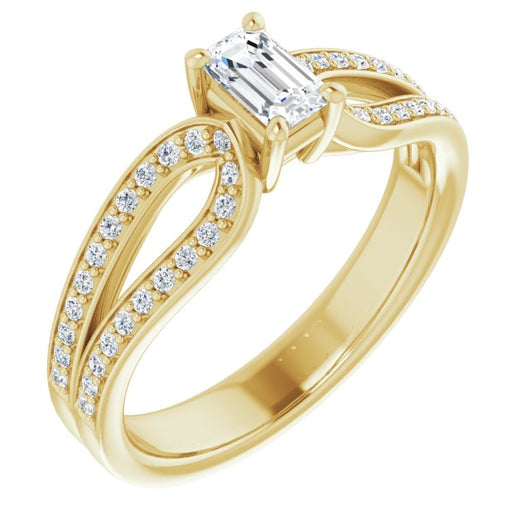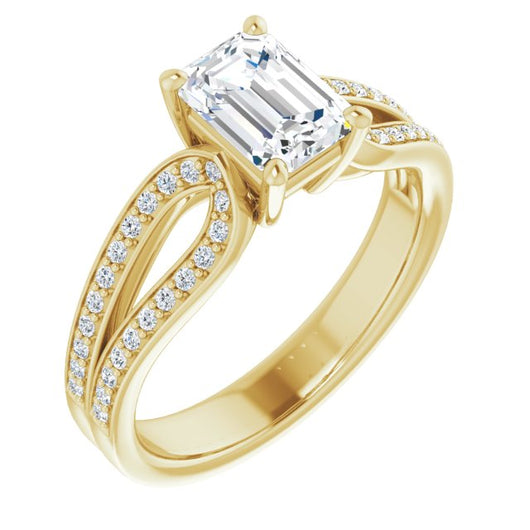 10K Yellow Gold Customizable Emerald/Radiant Cut Design featuring Shared Prong Split-band