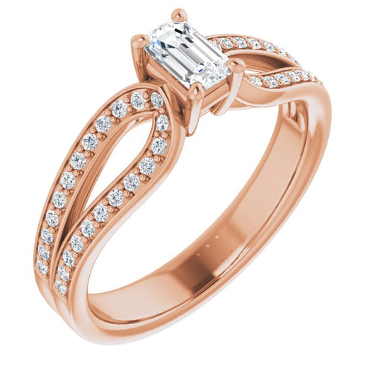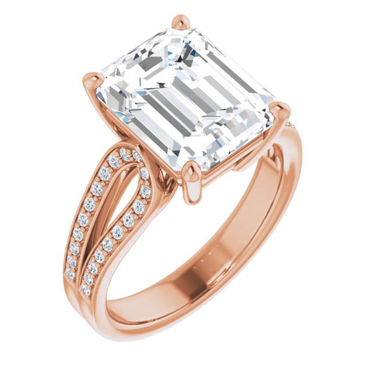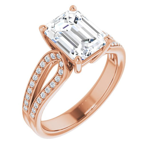 10K Rose Gold Customizable Emerald/Radiant Cut Design featuring Shared Prong Split-band