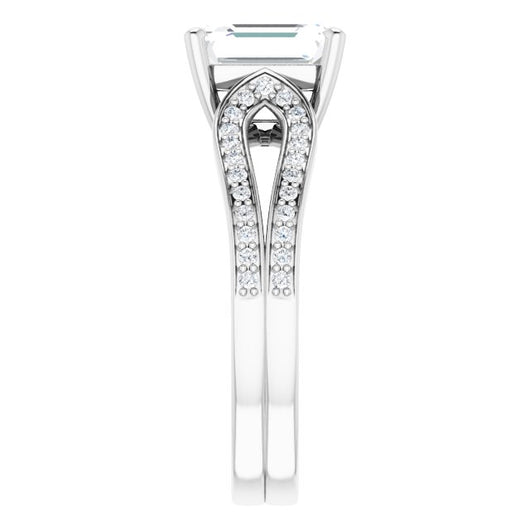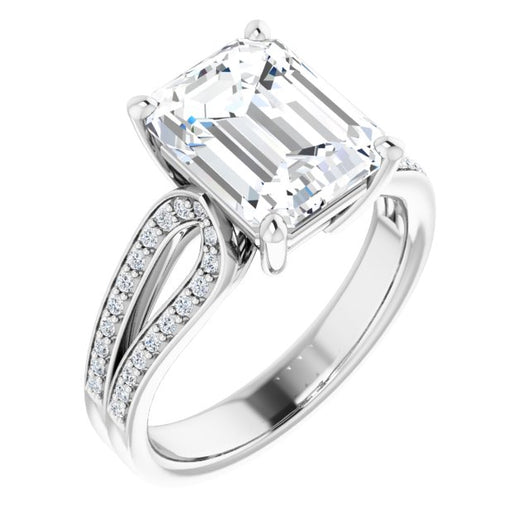10K White Gold Customizable Emerald/Radiant Cut Design featuring Shared Prong Split-band