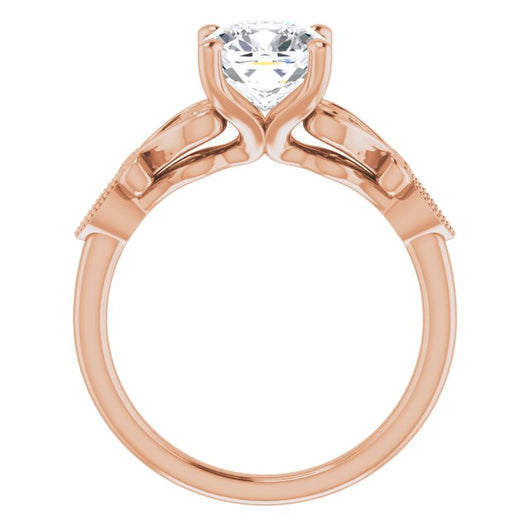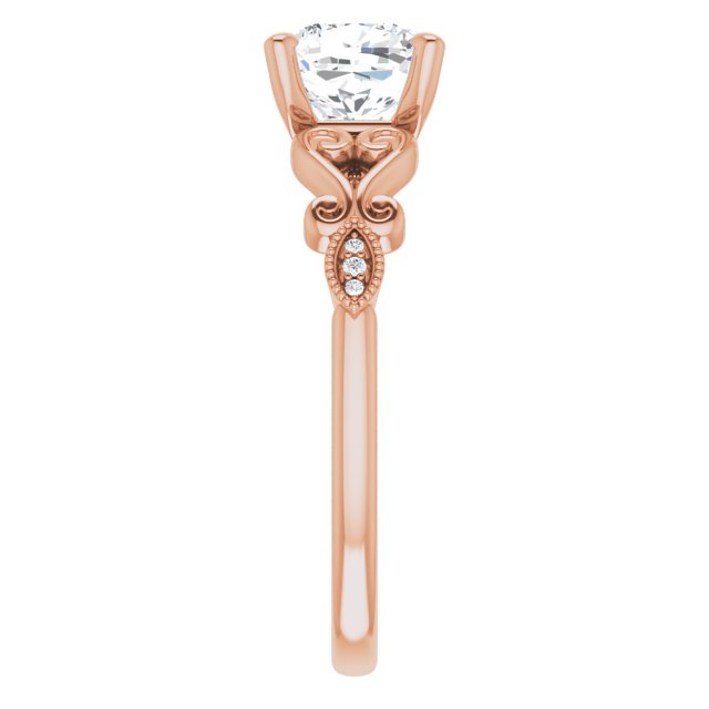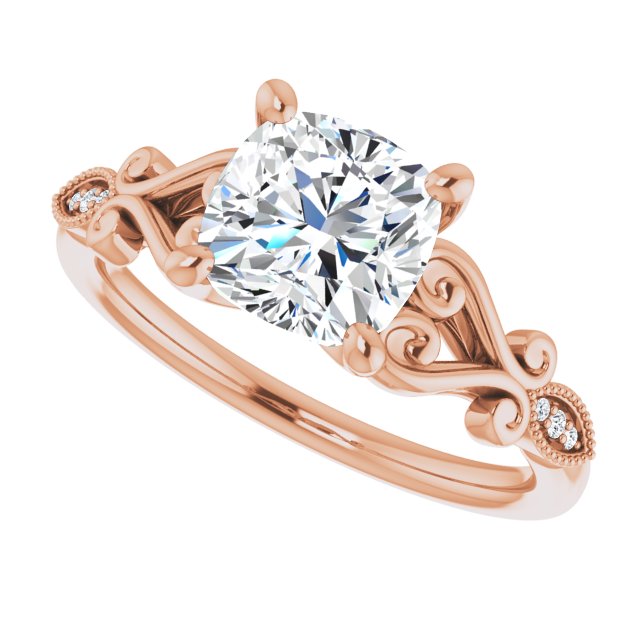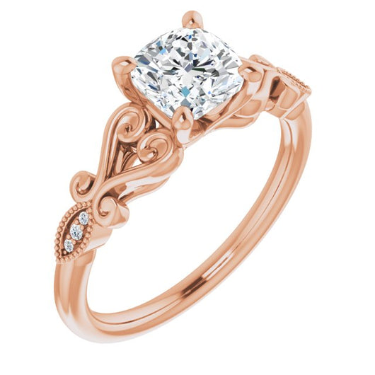 10K Rose Gold Customizable 7-stone Design with Cushion Cut Center Plus Sculptural Band and Filigree