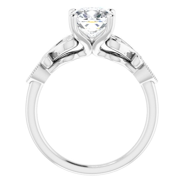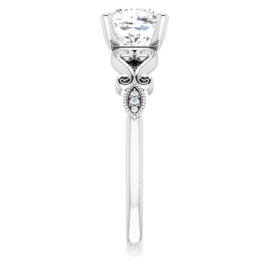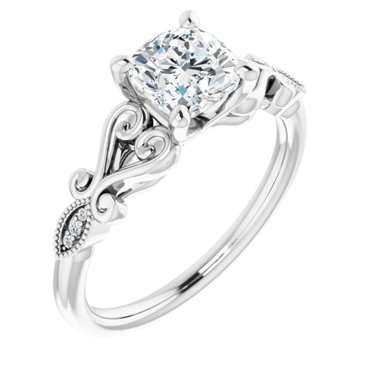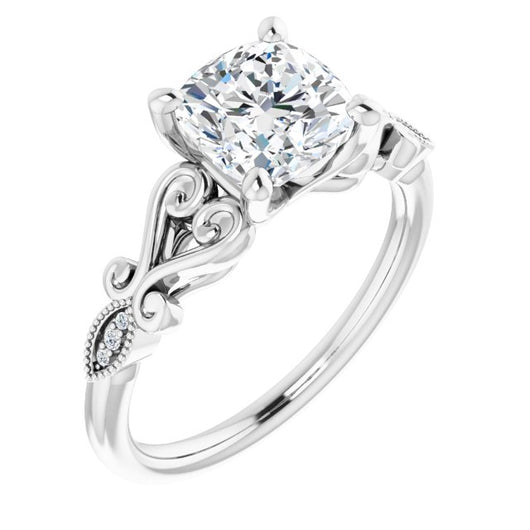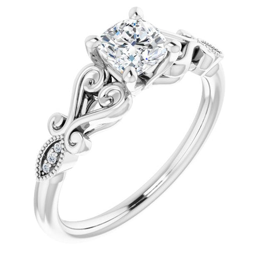 Platinum Customizable 7-stone Design with Cushion Cut Center Plus Sculptural Band and Filigree