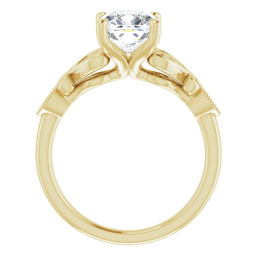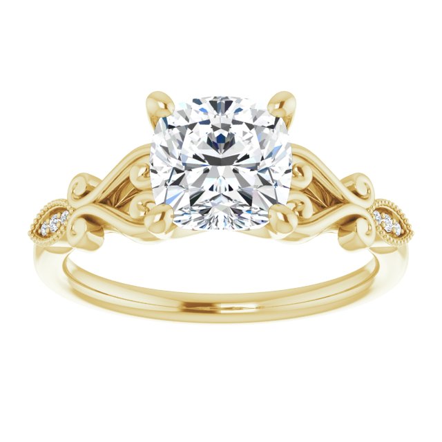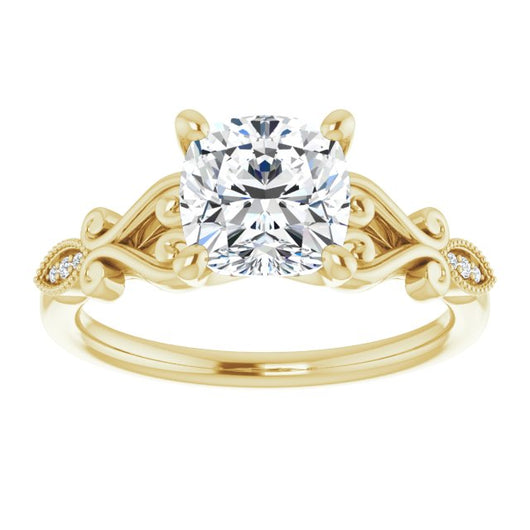 10K Yellow Gold Customizable 7-stone Design with Cushion Cut Center Plus Sculptural Band and Filigree