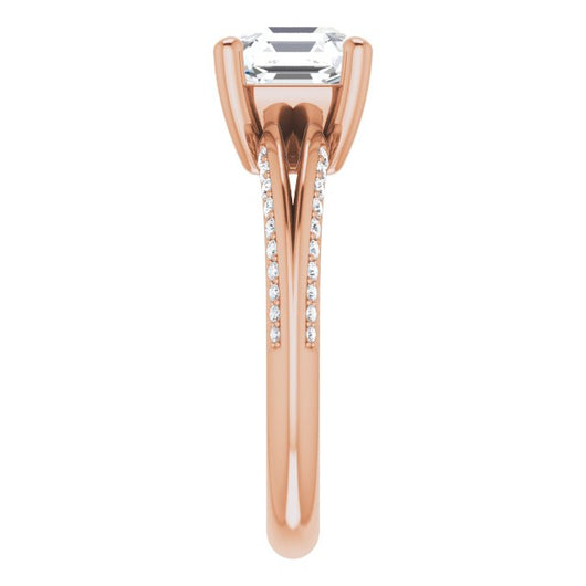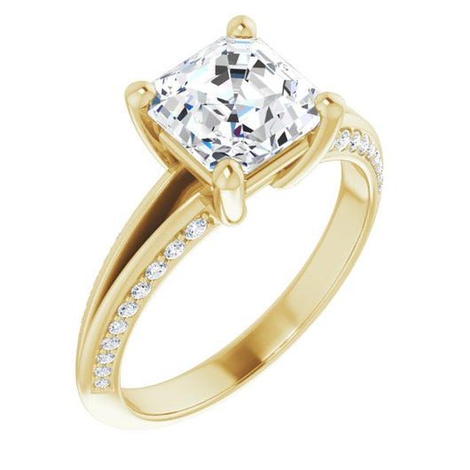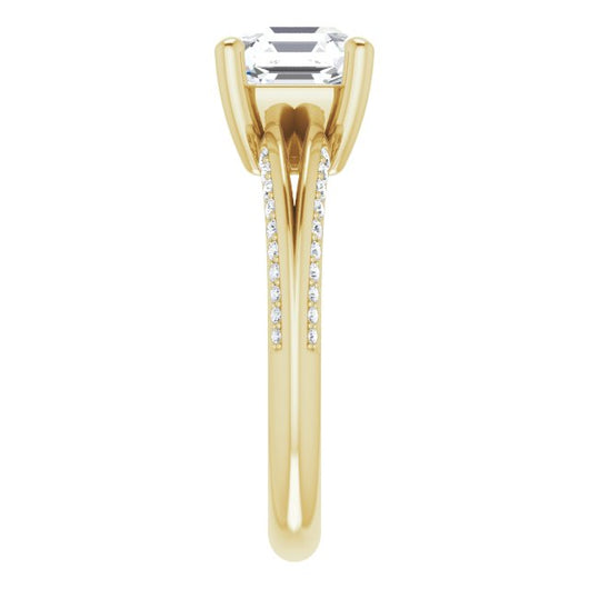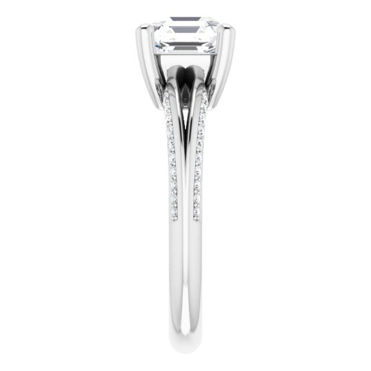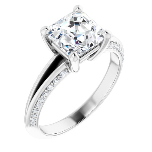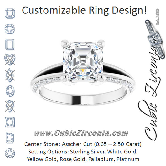 Center Stone Shape: Asscher Cut (as pictured). See this customizable ring set with other available center stone shapes here: customize setting.