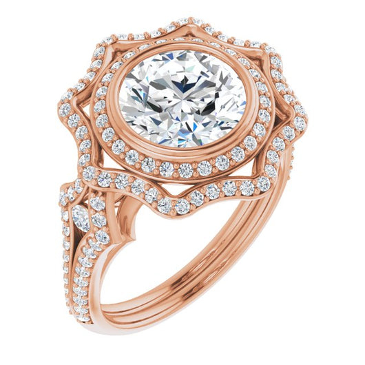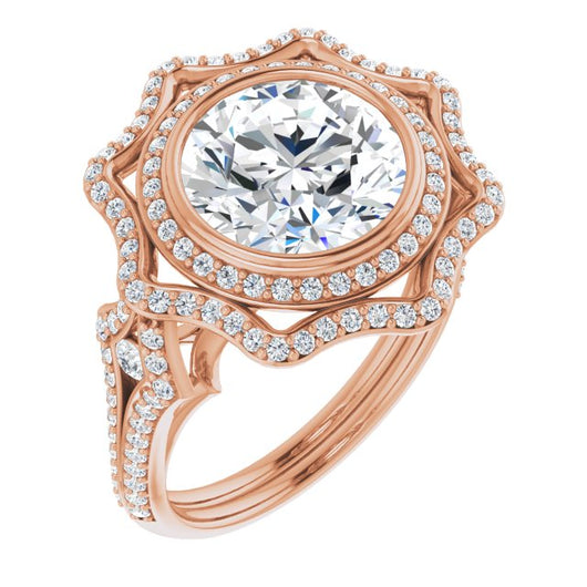 Center Stone Shape: Round Cut (as pictured). See this customizable ring set with other available center stone shapes here: customize setting.
